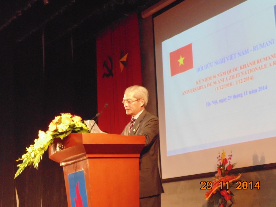 Nhân dịp này, thay mặt Lãnh đạo Hội hữu nghị Việt Nam-Romania, tôi xin bày tỏ lời biết ơn chân thành tới các cơ quan hữu trách cuả Đảng, Nhà nước đã chỉ đạo, tạo điều kiện và hỗ trợ cho Hội hữu nghị Việt Nam-Romania hoàn thành nhiệm vụ của một tổ chức ngoại giao nhân dân.